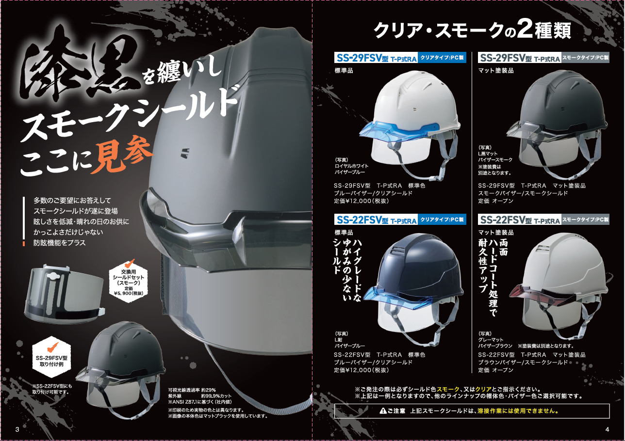 お知らせ HOMEお知らせ製品情報漆黒を纏いしスモークシールドここに見参!! 製品情報 2026.04.01 漆黒を纏いしスモークシールドここに見参!! 皆さまのご要望にお応えして、この度、SS-29FSV型/SS-22FSV型のシールドにスモーク色が遂に登場。 眩しさを低減・晴れの日のお供に防眩機能をプラス!! 2026年5月1日より発売となります。 中東情勢緊迫化に伴う弊社現状況について